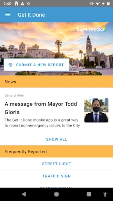 Get It Done San Diego is the official app for reporting non-emergency problems to the City of San Diego. App users can report problems like potholes or graffiti and connect directly to the City’s work tracking system.